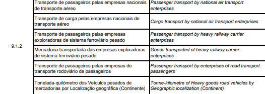 These indicators have been adopted to monitor the 2030 Development Agenda. Besides, modal split for passenger, including air transport inside metropolitain territory, are also calculated in the report of the Commission for the Transport Accounts of the Nation.